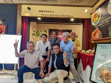 関西在住3名(49C 原田、49C小滝、51K住本)関東在住3名(49M 生田、52M 加藤、 51C山下)が参加しました。4月に行った名古屋での中村下宿OB会には7人が集まりましたが、今回は仕事の都合で関東在住1名(51K重光)が欠席です。残念!!