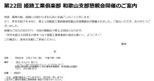 拝啓 厳寒の候、皆様には変わらずお元気にお過ごしのことと存じます。さて、昨年令和7年9月に、第21回姫路工業倶楽部和歌山支部懇親会が開催されました。ご協力いただき、ありがとうございました。皆様のご尽力のおかげで、今回の懇 […]