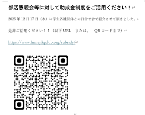 部活懇親会等に対して助成金制度をご活用ください!新着!!