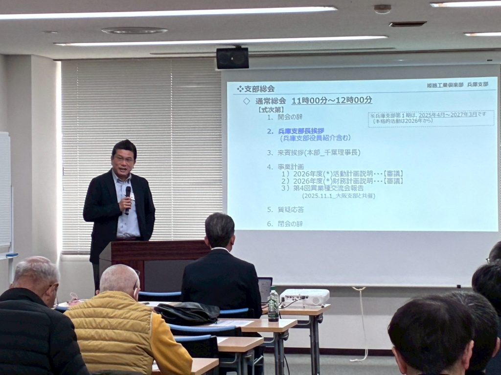 総会では、はじめに永野支部長から兵庫支部発足の経緯、思い、今後について等挨拶があり、