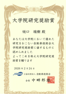 機械工学専攻の川口夏樹 助教が,第13回制御部門マルチシンポジウムにおいて2026年制御部門奨励賞(基礎分野)を受賞 2026年3月13日 最終更新日時 : 2026年3月13日 姫路工業倶楽部 発表題目は「深層展開を用いた離散時間適応制御系における設計パラメータのデータ駆動型調整法の検討」で,将来が期待される優秀な研究と認められました.
