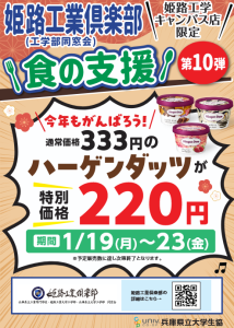 学生の皆さんに大人気のハーゲンダッツ割引販売です! お正月明けの口元を冷やして今年もがんばろう! 期間:2026年 1/19(月)~ 1/23(金)です。 お楽しみに! <注意事項> そのために講義時間を早い目に抜け出 […]